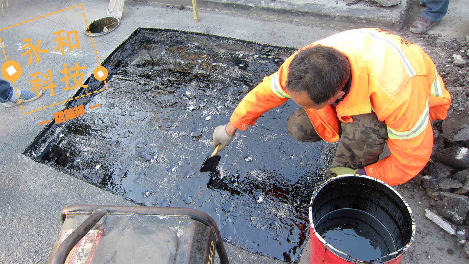 路陸邦冷補料研發(fā)初期是基于路面養(yǎng)護、應急搶險和小面積攤鋪需要,為解決因傳統(tǒng)瀝青冷補料質(zhì)量存在的無法快速固化且防水性極差,養(yǎng)護修補成本大、高污染、應急搶修不及時等問題。西安永和通過獨有的表面活性劑技術手段,在瀝青中加入一定量的冷補添加劑,研發(fā)出新型高粘速凝防水冷補料,使其達到更好的路用效果。