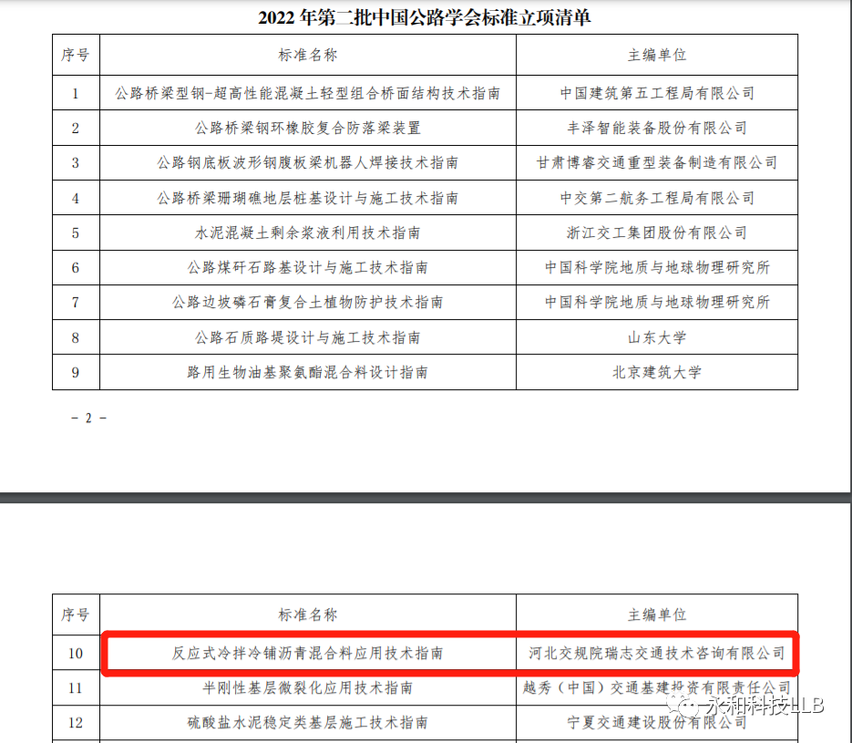 數(shù)據(jù)驗(yàn)證及數(shù)十年在多個(gè)冷拌冷鋪公路項(xiàng)目的成功應(yīng)用,于2023年1月順利通過(guò)《中國(guó)公路學(xué)會(huì)》國(guó)家級(jí)團(tuán)體標(biāo)準(zhǔn)初審認(rèn)定